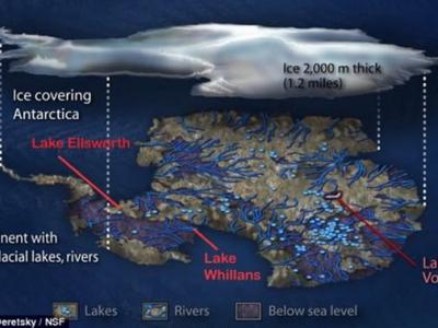 南极深处湖泊钻探实验的示意图,科学家计划对800米深处的湖泊进行采样分析 科学...