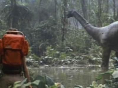 这是1985年电影《小恐龙历险记》中的剧照,一位古生物学家和她的丈夫在非洲丛林中...