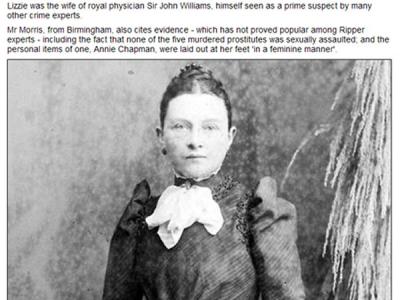 英国前律师莫里斯认为莉齐·威廉姆斯(上图)就是“开膛手杰克” 英国一名前律师最...