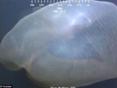 深海水母或鲸鱼胎盘?还无人能确认这个动物的起源 体内物体:这个动物好像拥有...