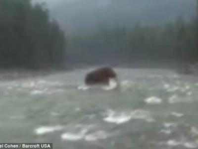 俄罗斯西伯利亚拍摄到疑似史前猛犸象渡河