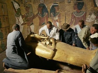 考古工作者将古代埃及最著名的法老之一图坦卡蒙的木乃伊石棺揭开 古埃及人非常看...