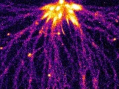 这束精灵闪光是科学家模拟出木星环境后,在瓶子里形成的 红色精灵闪光(左)和蓝...