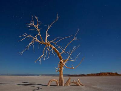 当地时间2011月1月20日,美国加州兰德附近,沙顿海南端的盐田里,满月光辉映照着...