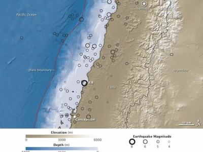 智利地震可能改变地轴方向 图:智利地震分布 NASA透露,今年2月发生在智利的8....