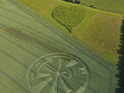 直径200英尺的麦田怪圈与心形树林在夏至这一天同时登场 怪圈的图案非常引人注...