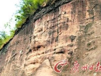 广东丹霞山赤壁丹崖上发现囍字天然奇观 记者25日从丹霞山景区获悉,丹霞山又出现...