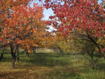 吉尔吉斯斯坦的野生杏树和苹果树生出了明亮的红色 每到秋季,绿油油的树叶都会变...