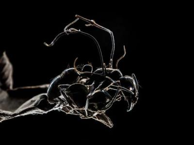 这只蚂蚁被一种真菌感染,变成了僵尸,并在真菌的引导下走出蚂...