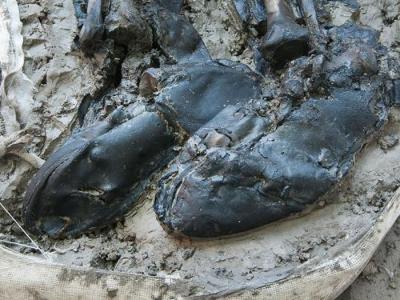英国伦敦泰晤士河畔出土500年前穿着大腿