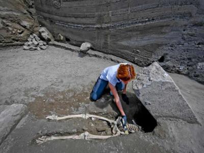 当初这具庞贝城罹难者的遗体出土时,考古学家怀疑他在维苏威火...