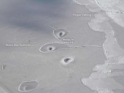 美国NASA从空中拍摄北极时发现冰层中的神秘孔洞相关视频:美国...