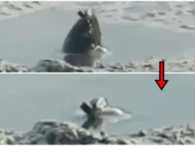 “神秘生物”在河上出现,随即消失不见。估计该生物...