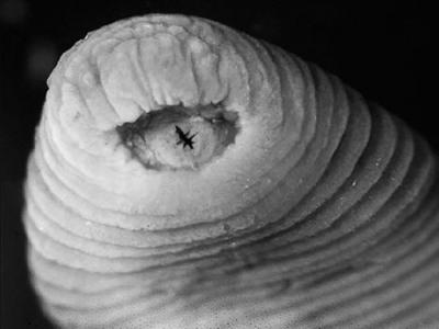 暴君水蛭有能锯开肉的巨大牙齿(此图未显示)。 PH...