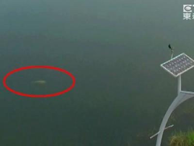 兰潭鱼精:台湾嘉义无人机拍到兰潭中出现