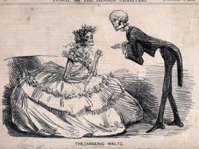 卡通《砷之华尔滋》(The Arsenic Waltz)提到衣服和人造花中的砷成分。一名成衣...