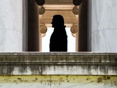 2016年八月,华府杰佛逊纪念馆上的生物膜黑斑。 PHOTOGRAPH BY JIM LO SCALZO, E...