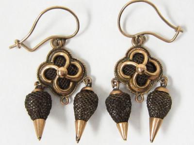 耳环深棕色部份为人发。在维多利亚时代,发饰与发圈都是悼念挚爱亲友的流行方式。...