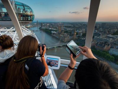 根据一项使用地理标记照片预测游客动向的研究,在「伦敦之眼」(London Eye)上拍...
