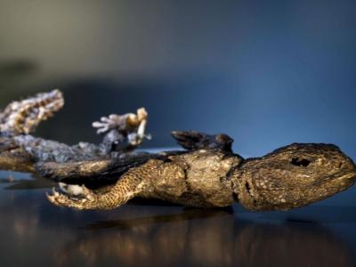 在埃及红海被发现的一只粒突箱鲀,因为盐和热沙而形成木乃伊。 「它是完美的立体...