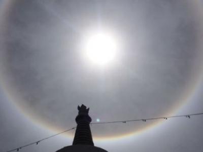西藏拉萨今天早上出现日晕奇观 (蜘蛛网)今天是24节气的立夏,西藏拉萨早上出现...
