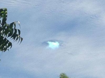 美国加州北部天空出现神秘空洞 (蜘蛛网报道)国外社交网站近日疯传一组奇异...