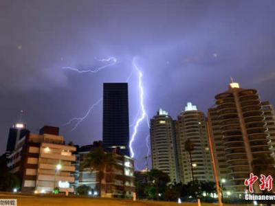 乌拉圭首都闪电划破夜空场面壮观