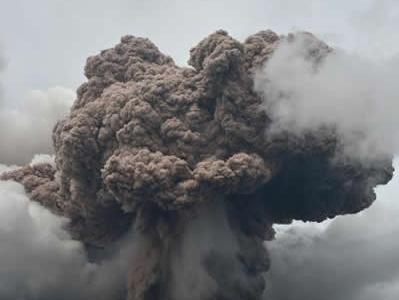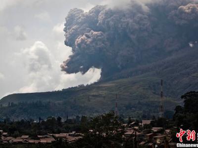 印尼北苏门答腊省锡纳朋火山向空中喷发火