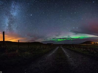图中显示的为一位年轻的阿米什男孩在凌晨4:30的上班途中看到的极光现象,拍摄者为...