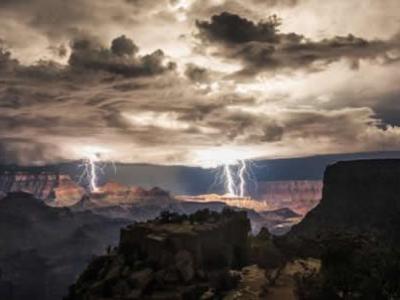 闪电击中美国亚利桑那州大峡谷的壮观美景 闪电击中美国亚利桑那州大峡谷的壮观...