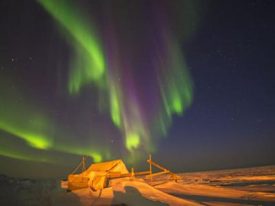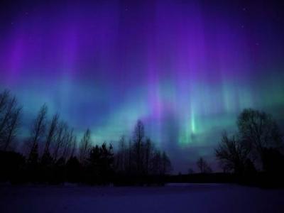 爱沙尼亚农村地区的绚烂北极光 就像宇宙之幕从天空落下,该图片展示了彩色斑斓的...