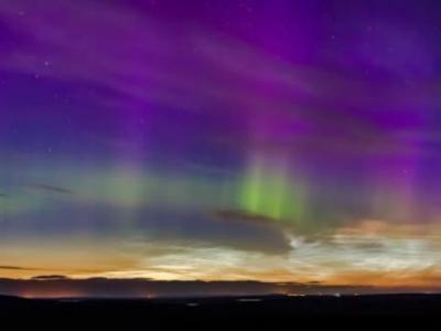 夜光云和极光交相辉映 苏格兰凯思内斯 夜光云 低层的夜光云 罕见的极...