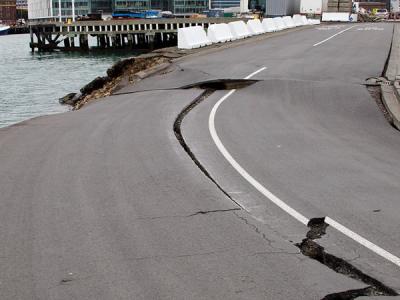 当地时间2013年7月22日,新西兰惠灵顿,地震导致路面断裂。 当地时间2013年7月...
