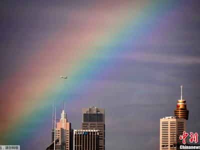 飞机穿行澳洲悉尼上空绝美彩虹 飞机穿行澳洲悉尼上空绝美彩虹 当地时间2013年...