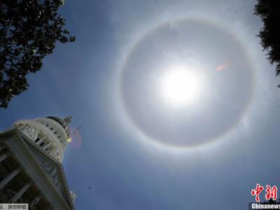 美国加州萨克拉门托上空出现“日晕”奇观 美国加州萨克拉门托上空出现“日晕”...