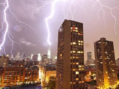 美国部分地区遭到雷暴袭击 闪电照亮世贸