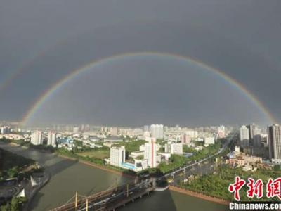 新疆库尔勒上空出现罕见双道彩虹