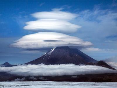 俄罗斯堪察加半岛上空的荚状云 犹如飞碟
