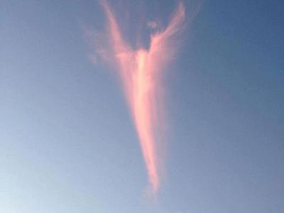 美国佛罗里达州天空出现红色“天使下凡”云彩 近日在美国佛罗里达州的天空中出现...