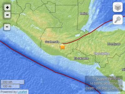 危地马拉发生6.2级地震 北京时间26日7时2分,危地马拉发生6.2级地震,震源深度2...