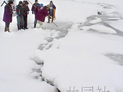 1月22日,日本长野县诹访湖确认出现了湖面冰块龟裂向上隆起的“神仙过海”自然奇...