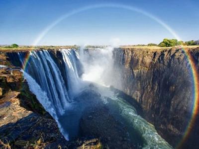 非洲维多利亚瀑布前拍摄到壮观彩虹