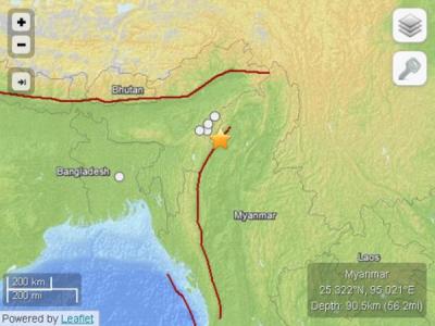 印度和缅甸的交界处发生里氏5.8级地震