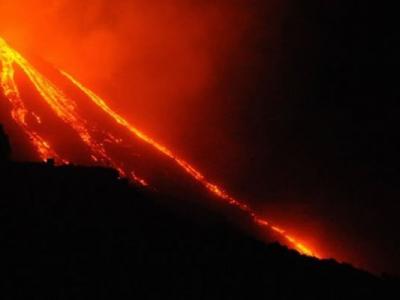 意大利斯特龙博利岛的火山喷发出熔岩 意大利斯特龙博利岛的火山喷发出熔岩 当...