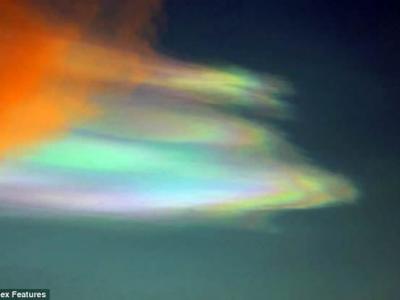 英国苏格兰阿伯丁郡上空出现彩虹般绚丽云彩