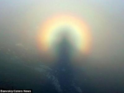 乌克兰一座山峰中拍摄到酷似“鬼魂”的照片 这种罕见景象其实是一种光线衍射现...