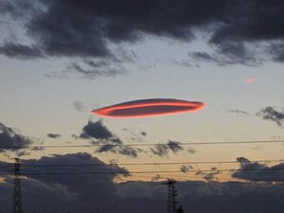 不同寻常的透镜云像是捕捉到太阳光线 紧密结构的透镜云以一定顺序排列在一起 ...