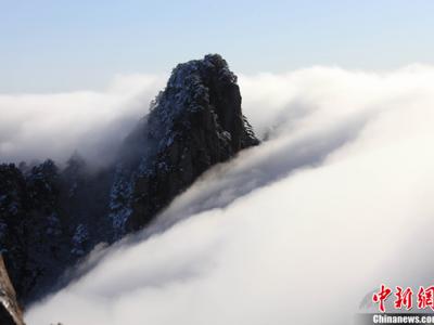 安徽黄山风景区始信峰拍摄的瀑布流云奇观 安徽黄山风景区始信峰拍摄的瀑布流云...