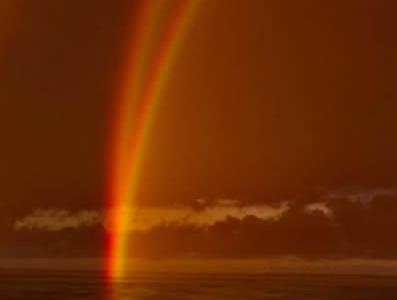 澳大利亚海面反射双彩虹壮观景象 57岁的摄影爱好者菲尔-汤普森拍摄了一幅令人不...