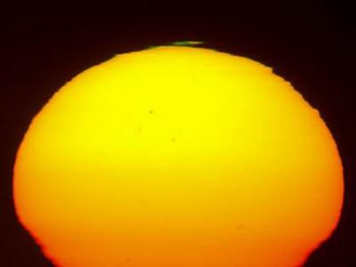 在伊朗山峰上拍到的太阳表面现神秘绿光奇景